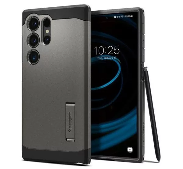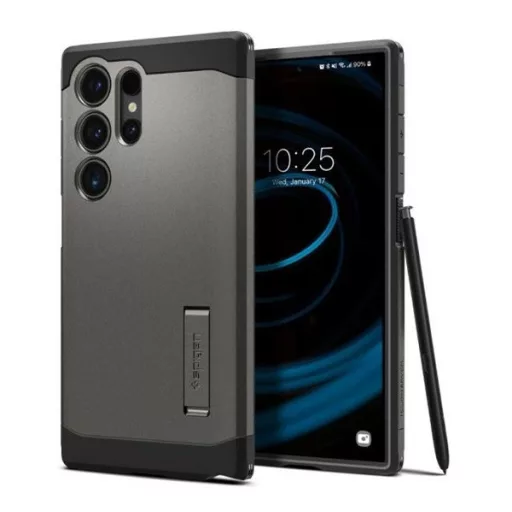 A Spigen Tough Armor egy strapabíró mobiltelefon tok, amely erős védelmet nyújt a mindennapi kopások, ütések és a kisebb nedvesség ellen. A tok dupla rétegű kialakítással rendelkezik, beleértve egy belső TPU réteget az ütések elnyelésére és egy külső, merev polikarbonát réteget a készülék körüli védelemért. Emellett beépített légpárnákkal és emelt keretekkel rendelkezik az extra védelem érdekében. Ergonomikus designja kényelmes fogást biztosít, és stílusos megjelenést kölcsönöz a készüléknek. A Spigen Tough Armor ideális választás aktív életmódot élők és a készüléküket biztonságosan védeni kívánók számára.