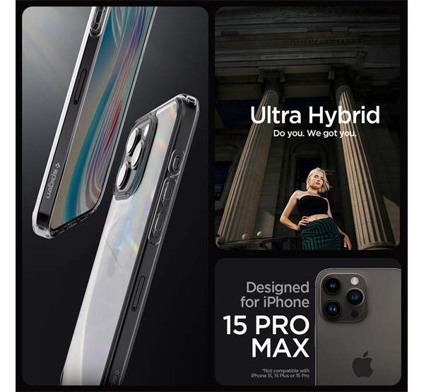 Spigen Ultra Hybrid Apple iPhone 15 Pro Max tok, Space Crystal, átlátszó-szürke, fekete-átlátszó