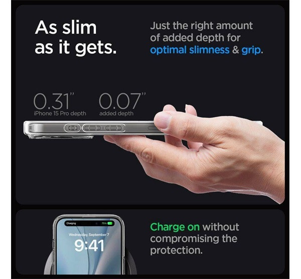 A Spigen Ultra Hybrid Mag tok a népszerű Ultra Hybrid sorozat legújabb fejlesztése, amely kiterjeszti a klasszikus átlátszó tok védelmét mágneses technológiával. Ez a tok integrál egy mágneses gyűrűt, ami kompatibilis az Apple MagSafe technológiájával, így lehetővé teszi a gyors és biztonságos mágneses töltést, valamint a különféle MagSafe tartozékok használatát anélkül, hogy le kellene venni a tokot. Az Ultra Hybrid Mag továbbra is biztosítja a kiváló ütésálló védelmet, köszönhetően a merev polikarbonát hátlapnak és rugalmas TPU keretnek. Az átlátszó hátlap tökéletesen mutatja be a telefon eredeti designját, miközben a kiemelt keretek extra védelmet nyújtanak a kamera és a képernyő számára.