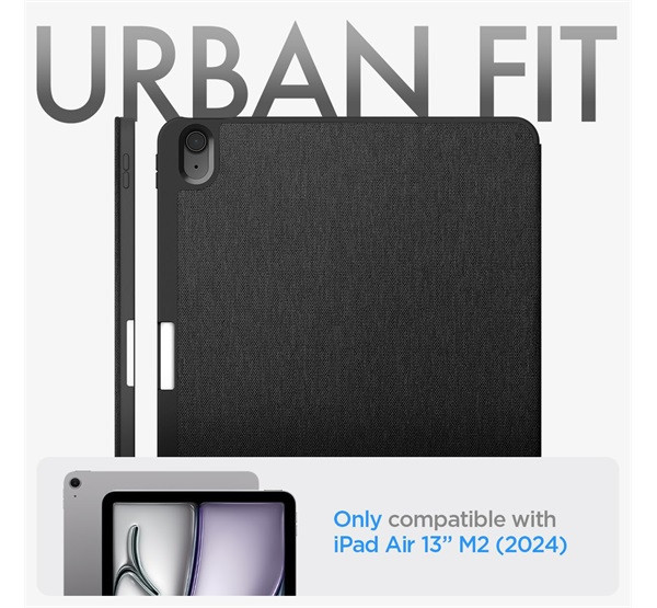 Spigen Urban Fit Apple iPad Air 13" (2024 / 2025) oldalra nyíló tok, fekete