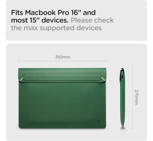 A Spigen Valentinus S Laptop Sleeve egy kiváló minőségű, öko-bőrből készült tok. A tok elegáns és tartós, mágneses záródással rendelkezik a biztonságos lezárás érdekében, és oldalsó portokhoz kialakított kivágásai révén lehetővé teszi a készülék kényelmes használatát. Különösen figyelemre méltó a tok kitámasztható funkciója, amely lehetővé teszi, hogy a laptopot kényelmes szögben támaszthassuk meg munka vagy multimédia nézés közben, így növelve a használati kényelmet. Ez a vékony és könnyű kialakítású tok tökéletes társ lehet azok számára, akik gyakran vannak úton, és nem szeretnének kompromisszumot kötni a stílus és funkcionalitás terén.