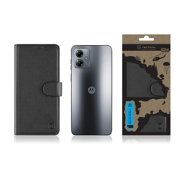 Tactical Field Notes Motorola G14, flip/oldalra nyíló tok, fekete