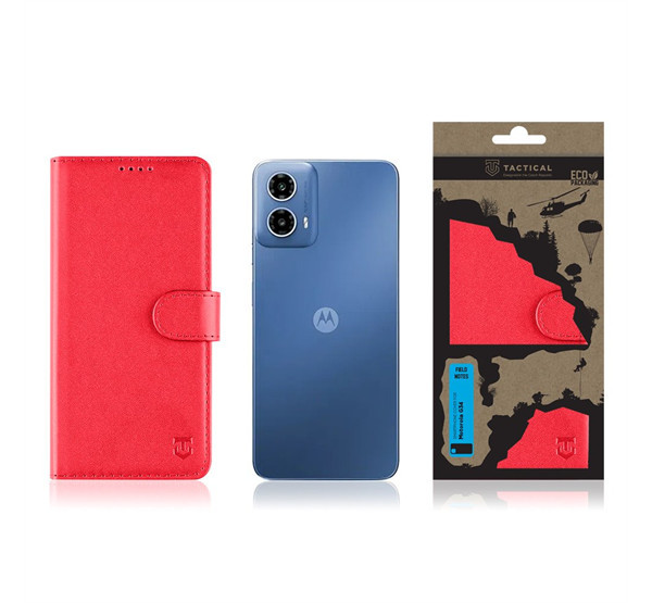 Tactical Field Notes Motorola G34, flip/oldalra nyíló tok, piros
