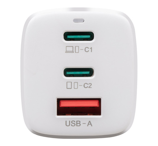 A 65W-os teljesítmény biztosítja, hogy tölthessed a MacBook-odat, iPad-edet vagy más laptopokat és tableteket. A 65W teljesítmény nem oszlik meg. Ez azt jelenti, hogy egy USB-C porton valóban kihasználhatod a teljes 65W-ot, és nem csak a portok összegét. A töltő összesen három porttal rendelkezik: 2xUSB-C és 1xUSB-A porttal.