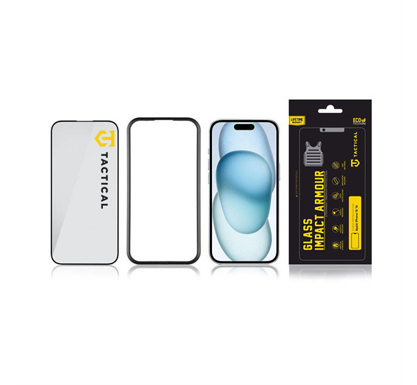 Apple iPhone 15 / 16, Kijelzővédő fólia, ütésálló fólia (az íves részre is!), Tempered Glass (edzett üveg), Tactical Glass Impact Armour, fekete részletes leírása