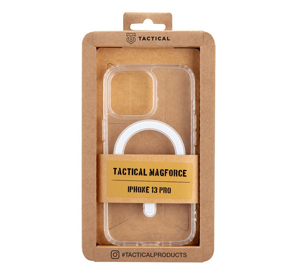 A Tactical MagForce egy vékony, átlátszó PC/TPU hátlapvédő, amely tökéletesen illeszkedik a telefonra. A tok két anyagból áll: a hátoldalon erős polikarbonát található, az oldalaknál pedig rugalmas TPU anyag. Különlegessége, hogy egy erős mágnessel rendelkezik, amely kompatibilis az Apple MagSafe kiegészítőkkel. A polikarbonát anyagnak köszönhetően a tok nem sárgul be a telefon töltése közben keletkező hő miatt. A tok teljesen védi a telefon hátulját, oldalait és sarkait, biztosítva a védelmet az esések és a mindennapi használat során is. Nagy előnye, hogy pontosan illeszkedik a készülékhez, miközben minden gomb és csatlakozó könnyen hozzáférhető marad. Emellett a telefon legsebezhetőbb pontjait, például a sarkakat különösen védi. Az enyhén megemelt szélek pedig megakadályozzák, hogy a kijelző megsérüljön, amikor a készüléket képernyővel lefelé helyezzük le. A Tactical márka szokásához híven a termék csomagolása teljes mértékben újrahasznosított papírból készült.