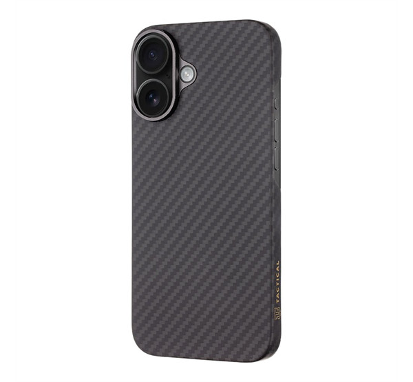 Apple iPhone 16, Műanyag hátlap védőtok, közepesen ütésálló, aramidszállal, Magsafe töltővel kompatibilis, karbon minta, Tactical MagForce Aramid, fekete
