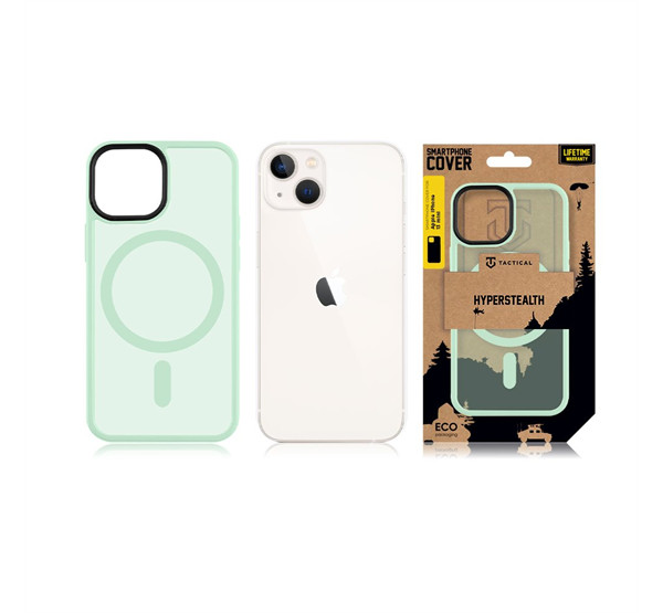Apple iPhone 13 Mini, Műanyag hátlap védőtok + szilikon keret, közepesen ütésálló, Magsafe kompatibilis, Tactical MagForce Hyperstealth, áttetsző/menta részletes leírása