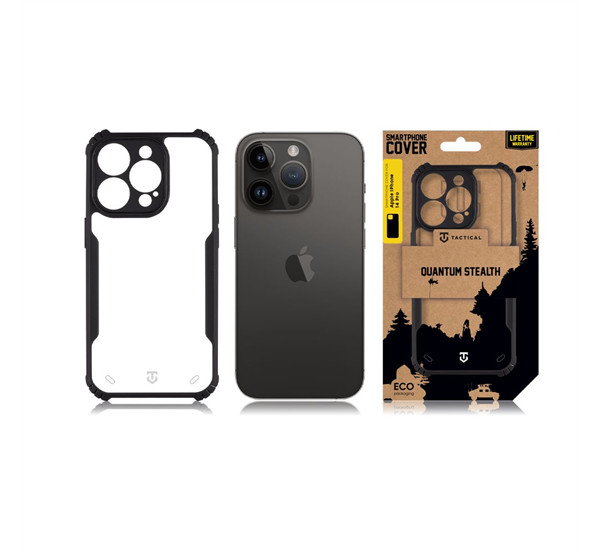 Apple iPhone 14 Pro, Szilikon tok, közepesen ütésálló, légpárnás sarok, Tactical Quantum Stealth, átlátszó/fekete részletes leírása
