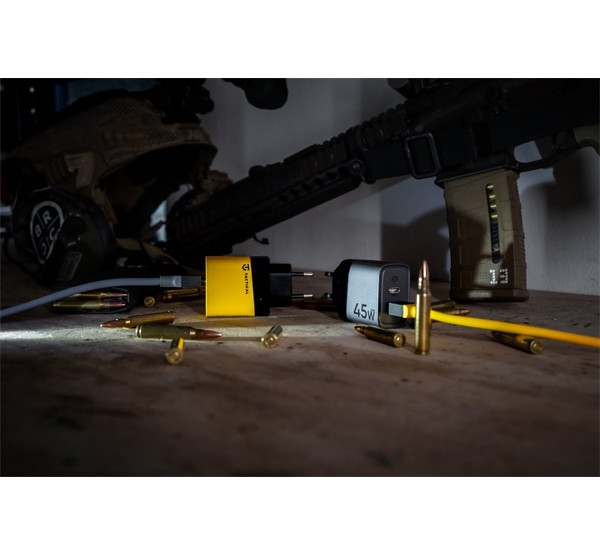 Tactical hálózati gyorstöltő adapter USB-A+ USB-C, GaN, 45W, sárga Tactical hálózati gyorstöltő adapter USB-A+ USB-C, GaN, 45W, sárga Tactical hálózati gyorstöltő adapter USB-A+ USB-C, GaN, 45W, sárga