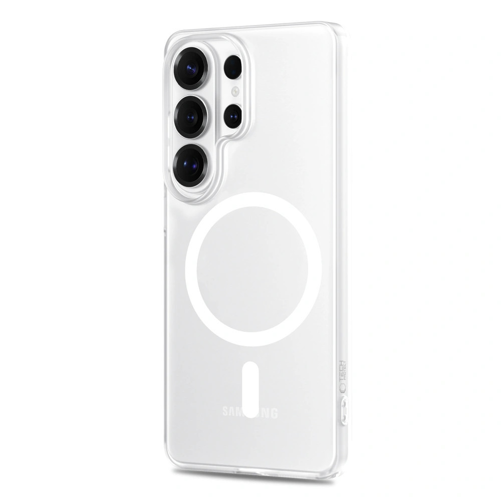 Tech-Protect MagSlim Samsung Galaxy S26 Ultra hátlap tok kitámasztóval, MagSafe, áttetsző-fehér