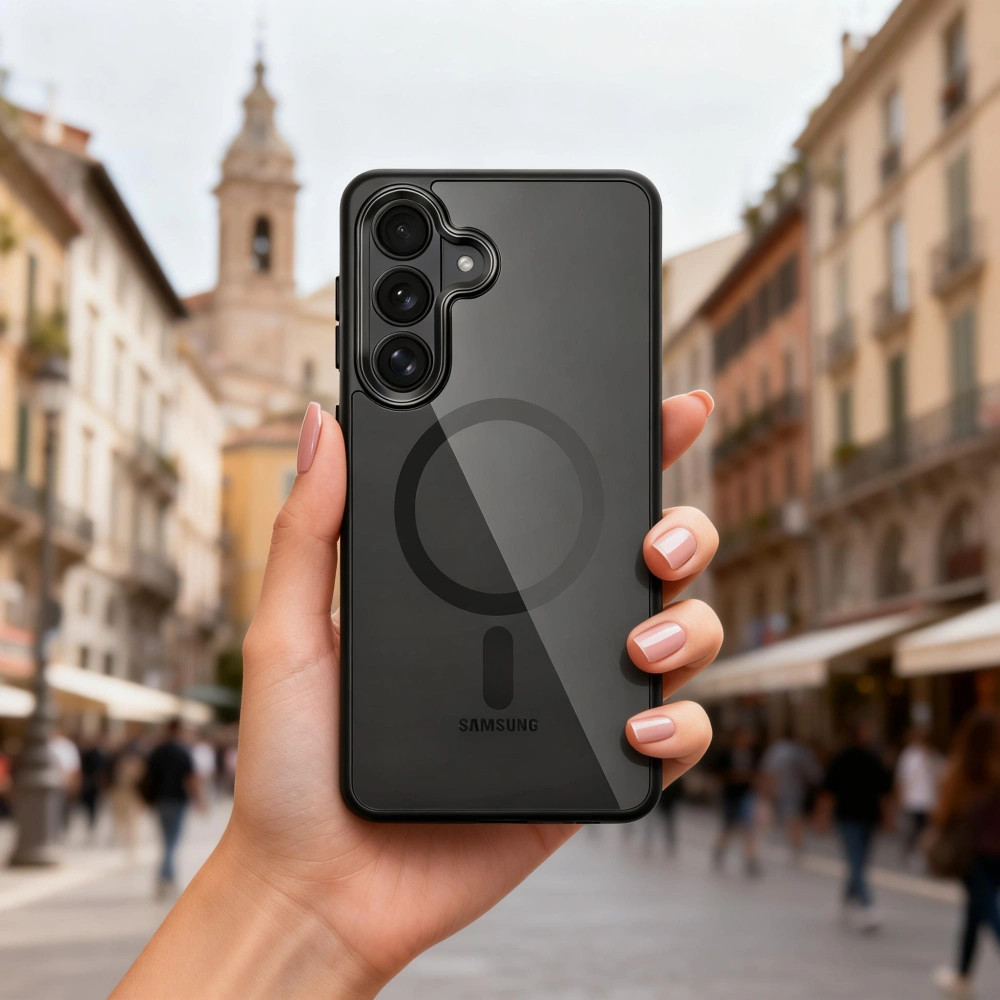 Tech-Protect Magmat Samsung Galaxy S26 Plus hátlap tok, MagSafe, átlátszó-fekete Tech-Protect Magmat Samsung Galaxy S26 Plus hátlap tok, MagSafe, átlátszó-fekete Tech-Protect Magmat Samsung Galaxy S26 Plus hátlap tok, MagSafe, átlátszó-fekete