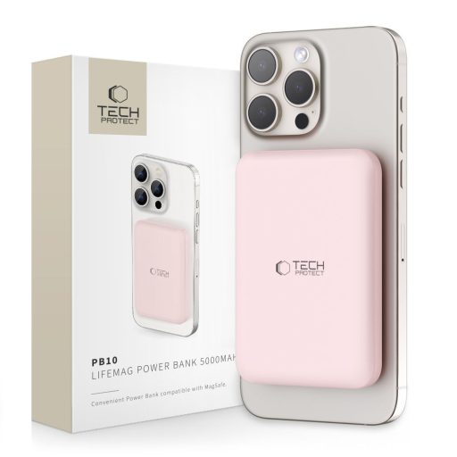 Tech-Protect PB10 LifeMag Powerbank / külső akkumulátor, MagSafe, kompakt, 5000mAh, rózsaszín