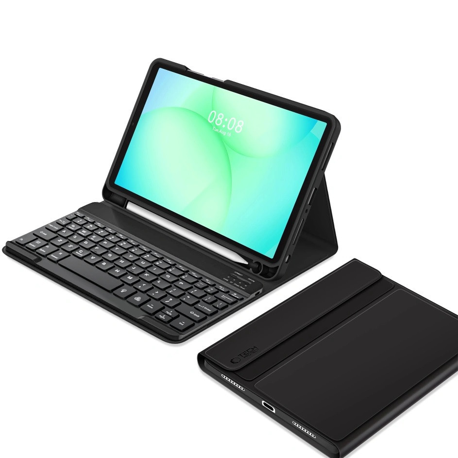 Tech-Protect Sc Pen + Keyboard Samsung Galaxy Tab A9+ / Tab A11+ oldalra nyíló, kitámasztható mappa tok ceruza tartóval, mágneses rögzítés, billentyűzettel, fekete