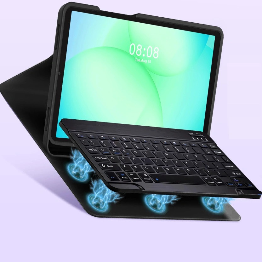 A készlet kulcsfontosságú eleme a mágnesesen rögzíthető, vezeték nélküli Bluetooth billentyűzet, amely tabletjét egy pillanat alatt produktív munkaállomássá alakítja. A háttérvilágítású billentyűk sötétben is kényelmes gépelést biztosítanak, a hosszú, akár 140 órás akkumulátor-üzemidő pedig garantálja a folyamatos használatot. A billentyűzet akár 10 méteres hatótávolsággal rendelkezik, és egyszerűen csatlakoztatható a legnépszerűbb operációs rendszerekhez. (Fn+Q iOS-hez, Fn+W Androidhoz és Fn+E Windows-hoz) Kényelmesen tölthető a mellékelt USB / USB Type-C kábellel.