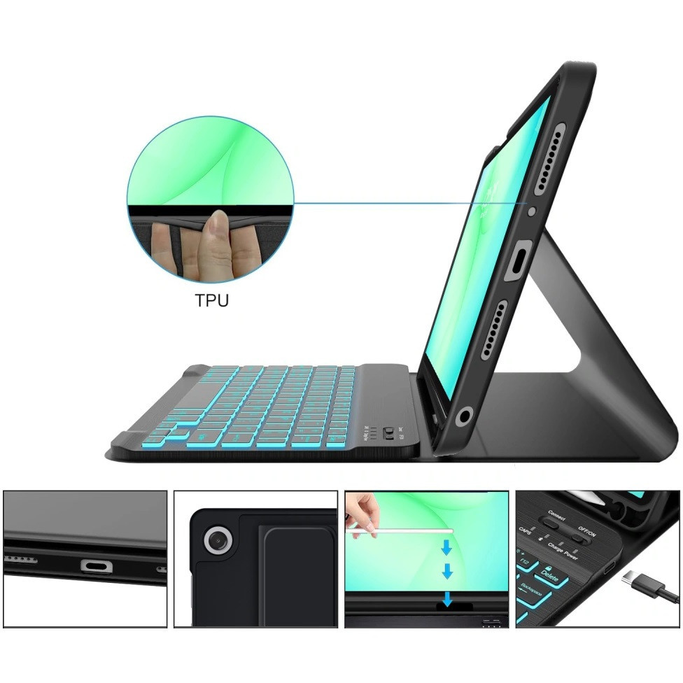 A Tech-Protect SC Pen + Keyboard funkcionális tokja megvédi készülékét a sérülésektől és a karcolásoktól. Kompakt, könnyű kialakítás, kiváló minőségű anyagból és rugalmas TPU-ból, matt és kellemes felülettel.