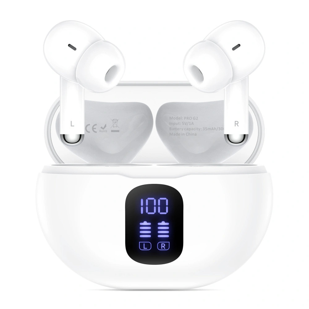 Tech-Protect Ultraboost Pro 2 TWS vezeték nélküli fülhallgató, töltést jelző kijelzővel, fehér
