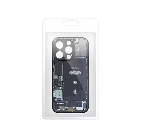 A hátlapot a telefon belsejét utánzó minta különbözteti meg . A tok szokatlan kialakítását a széleken és a belső oldalon elegáns matt fekete kivitel egészíti ki.