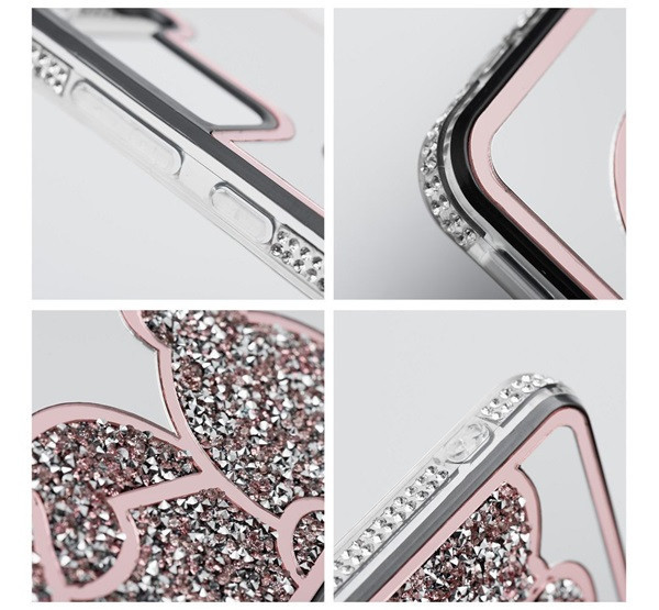A Teddy Bear egy stílusos és funkcionális tok, amely jellegzetes, csillogó mackómintával, emelt élekkel rendelkezik. Műanyagból készült.