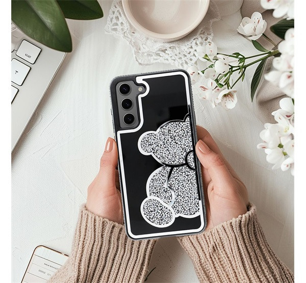 Teddy Bear Samsung Galaxy A25 5G csillogó köves tok, ezüst