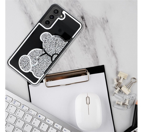 A Teddy Bear egy stílusos és funkcionális tok, amely jellegzetes, csillogó mackómintával, emelt élekkel rendelkezik. Műanyagból készült.