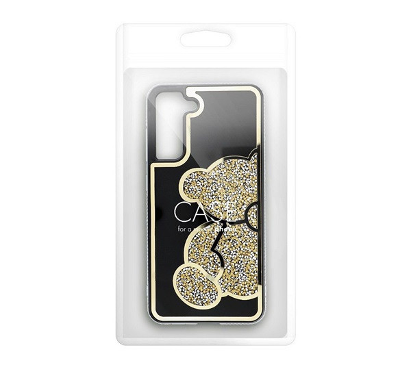 A Teddy Bear egy stílusos és funkcionális tok, amely jellegzetes csillogó mackó dizájnnal, kiemelkedő élekkel és műanyag kivitelezéssel rendelkezik.