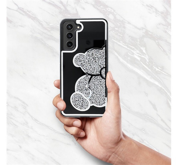 A Teddy Bear egy stílusos és funkcionális tok, amely jellegzetes csillogó mackó dizájnnal, kiemelkedő élekkel és műanyag kivitelezéssel rendelkezik.