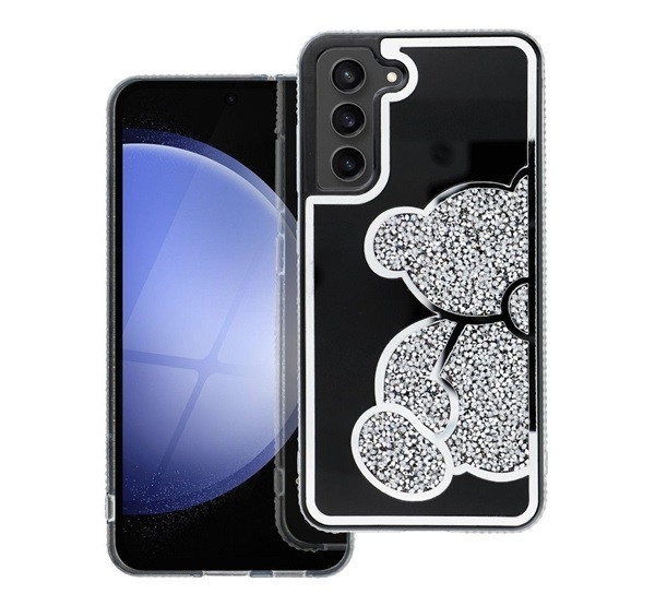 A Teddy Bear egy stílusos és funkcionális tok, amely jellegzetes csillogó mackó dizájnnal, kiemelkedő élekkel és műanyag kivitelezéssel rendelkezik.