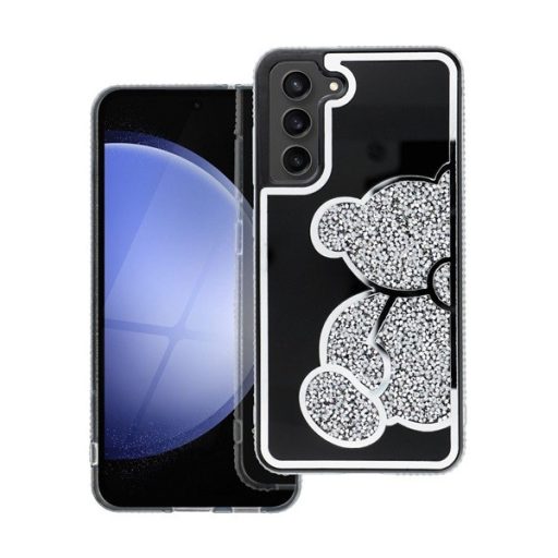 Teddy Bear Samsung Galaxy S24 Ultra csillogó köves tok, ezüst