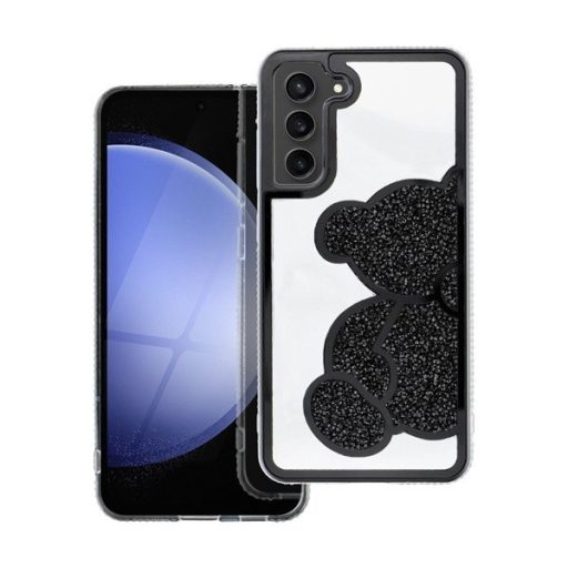 A Teddy Bear egy stílusos és funkcionális tok, amely jellegzetes csillogó mackó dizájnnal, kiemelkedő élekkel és műanyag kivitelezéssel rendelkezik.