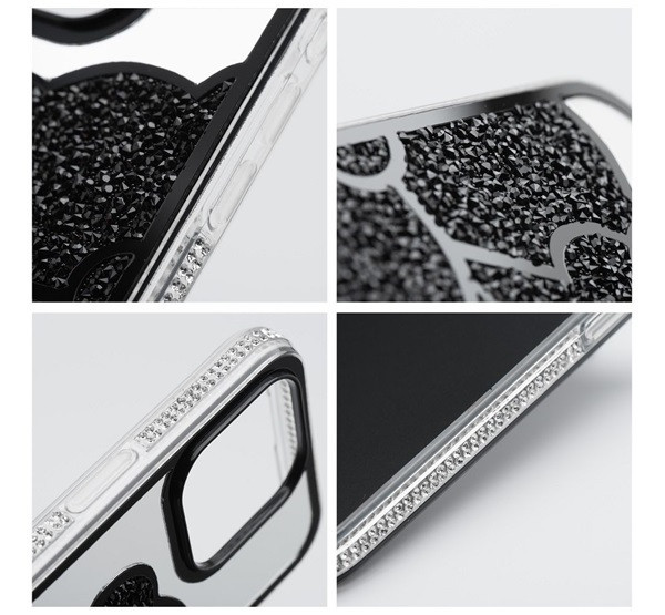 Teddy Bear iPhone 13 Pro csillogó köves tok, fekete