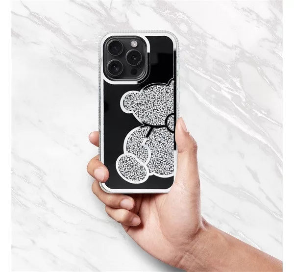 A Teddy Bear egy stílusos és funkcionális tok, amely jellegzetes, csillogó mackómintával, emelt élekkel rendelkezik. Műanyagból készült.