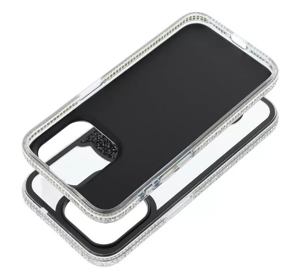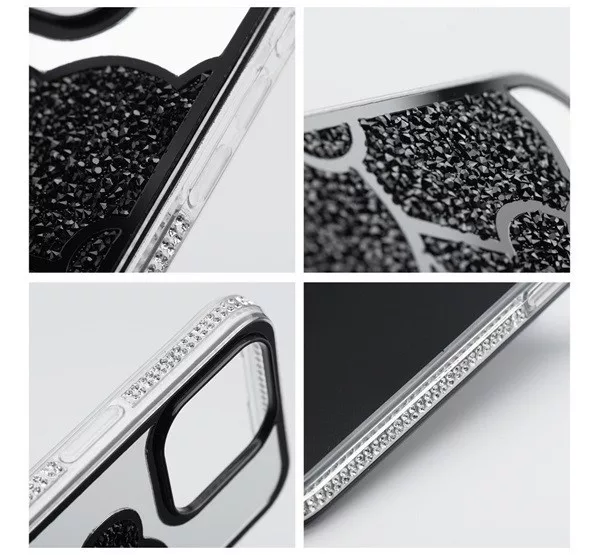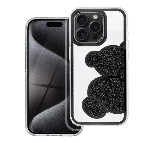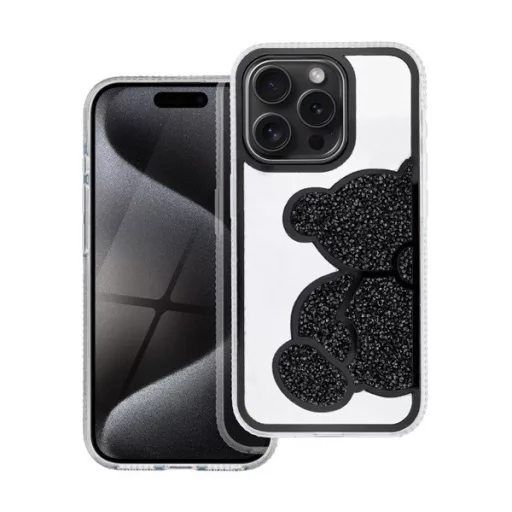 Teddy Bear iPhone 15 Pro csillogó köves tok, fekete