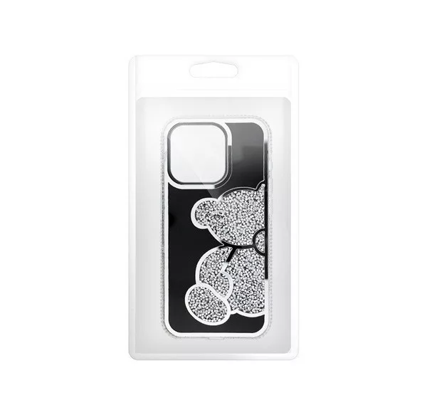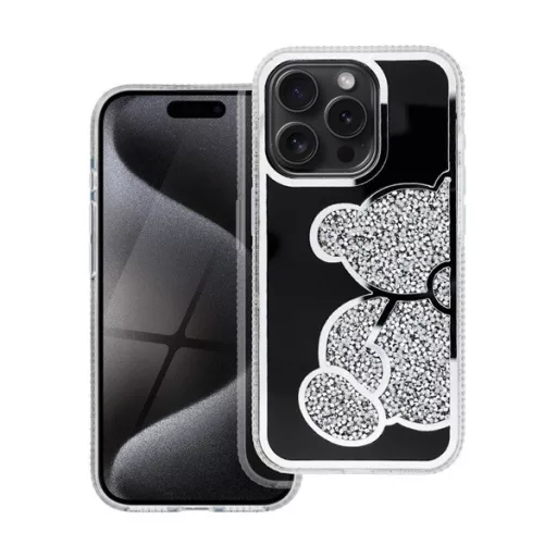 Teddy Bear iPhone 15 csillogó köves tok, ezüst