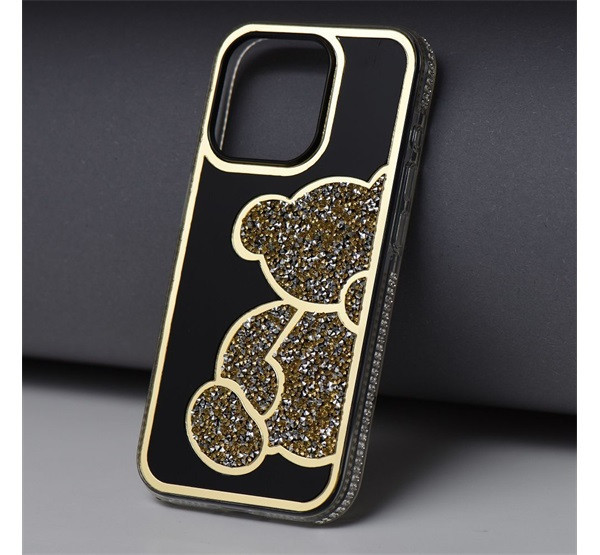 Teddy Bear iPhone 16 Plus csillogó köves tok, arany