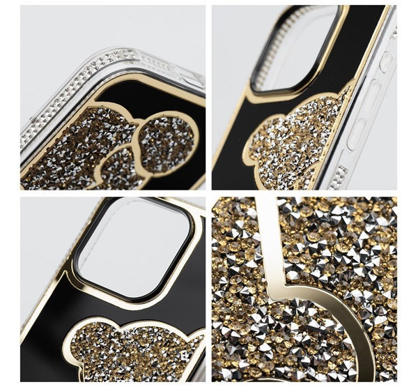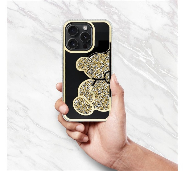 A Teddy Bear egy stílusos és funkcionális tok, amely jellegzetes, csillogó mackómintával, emelt élekkel rendelkezik. Műanyagból készült.