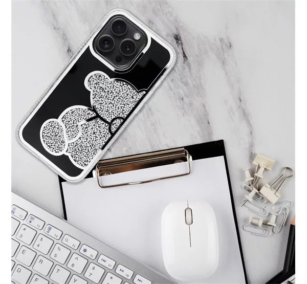 A Teddy Bear egy stílusos és funkcionális tok, amely jellegzetes, csillogó mackómintával, emelt élekkel rendelkezik. Műanyagból készült.