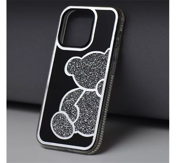 Teddy Bear iPhone 16 Pro csillogó köves tok, ezüst