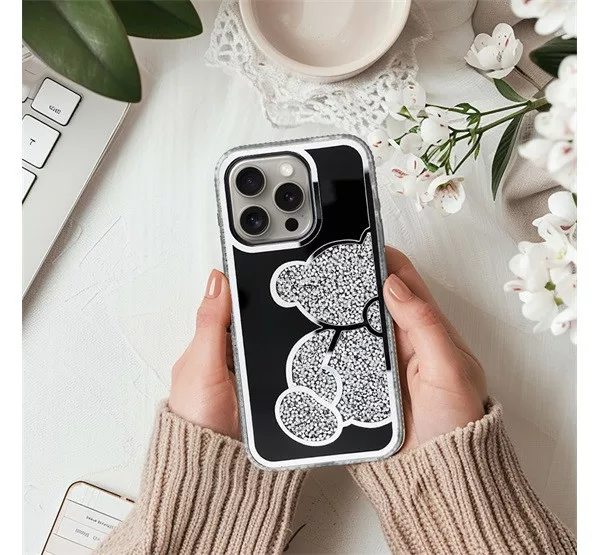 A Teddy Bear egy stílusos és funkcionális tok, amely jellegzetes, csillogó mackómintával, emelt élekkel rendelkezik. Műanyagból készült.