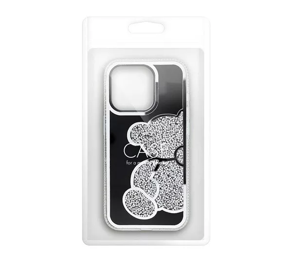Teddy Bear iPhone 16 csillogó köves tok, ezüst