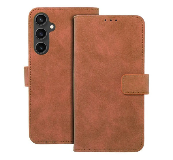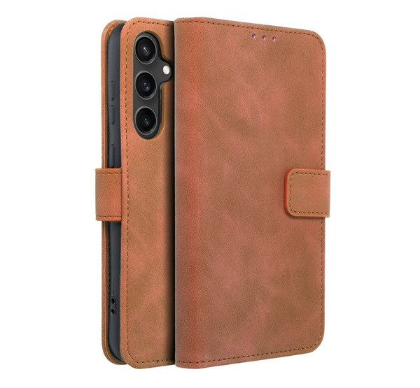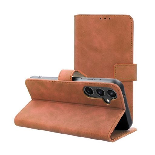 Tender Book Samsung Galaxy S23 FE flip/oldalra nyíló műbőr tok kártyatartó résszel, barna