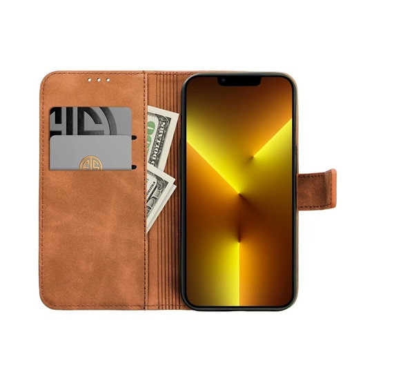 Tender Book Samsung Galaxy S24 FE flip/oldalra nyíló műbőr tok kártyatartó résszel, barna