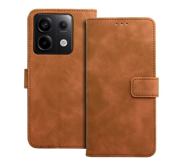 Tender Book Xiaomi Redmi Note 13 Pro 5G flip/oldalra nyíló műbőr tok kártyatartó résszel, barna