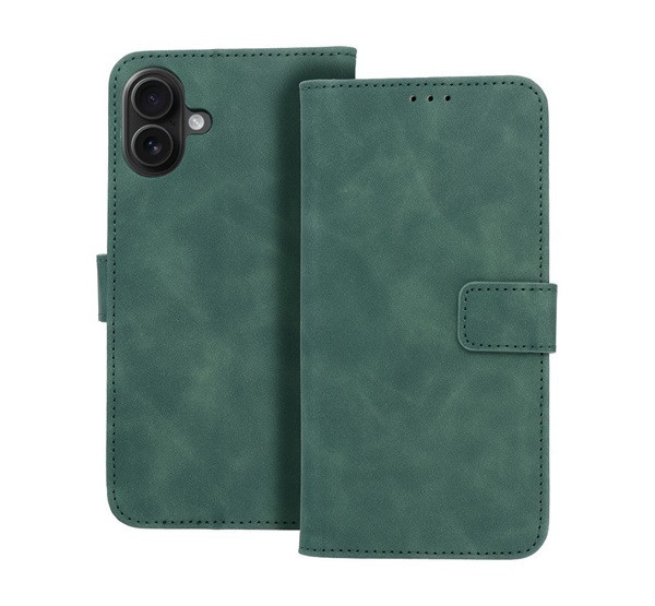 Tender Book iPhone 16 Plus flip/oldalra nyíló műbőr tok kártyatartó résszel, zöld