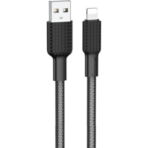 USB töltő- és adatkábel, Lightning, 100 cm, 2400 mA, törésgátlóval, gyorstöltés, cipőfűző minta, Hoco X69 Jaeger, fekete/fehér