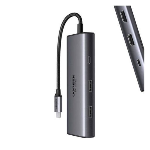 Ugreen CM498 6 in1 adapter USB-C- 2xUSB-A 3.0, USB-C 3.0, 2xHDMI, PD, ezüst