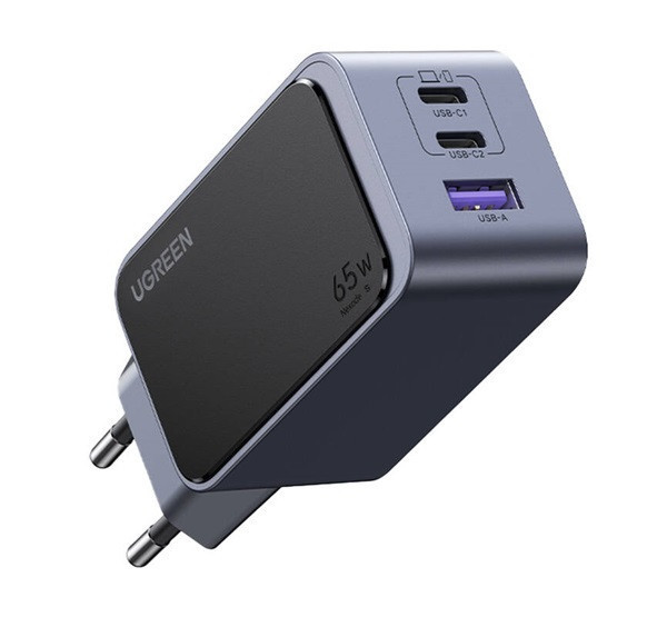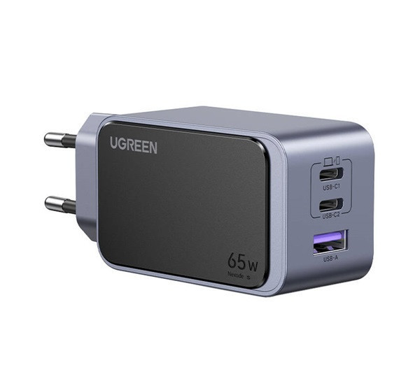 Ugreen Nexode Air 1xUSB-A-2xUSB-C hálózati töltő adapter, 65W, szürke