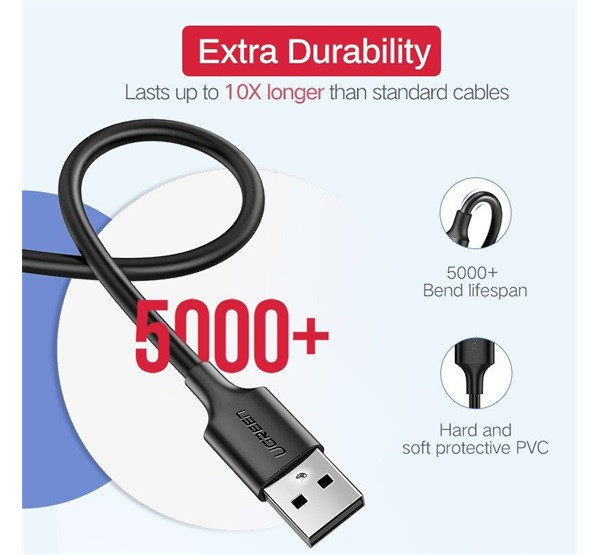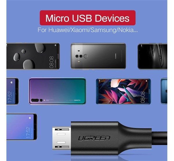 Ugreen USB-A-MicroUSB kábel, QC 3.0, 2.4A, 1m, (fehér)
