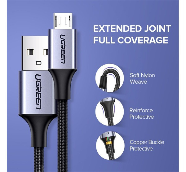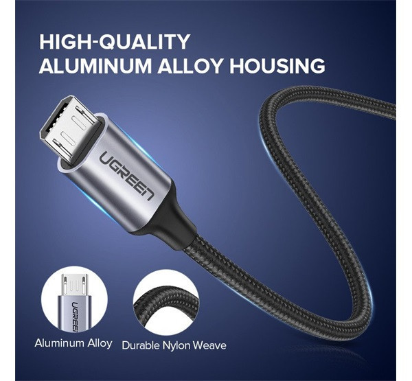 Az UGREEN micro USB kábel a magas minőséget, tartósságot és esztétikát képviseli. A kiváló minőségű TPE, a nylonfonat és az alumíniumvégek biztosítják a kábel nagyfokú tartósságát és hosszú élettartamát.