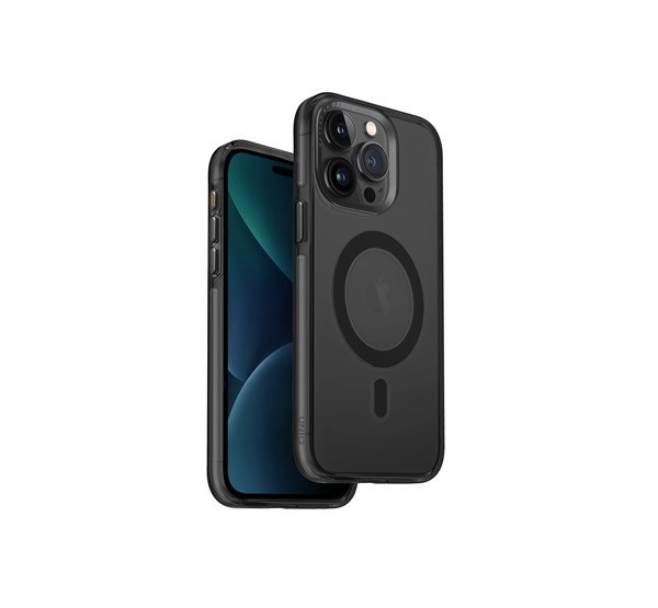 Uniq Calio Apple iPhone 15 Pro Magsafe szilikon tok, fekete-átlátszó